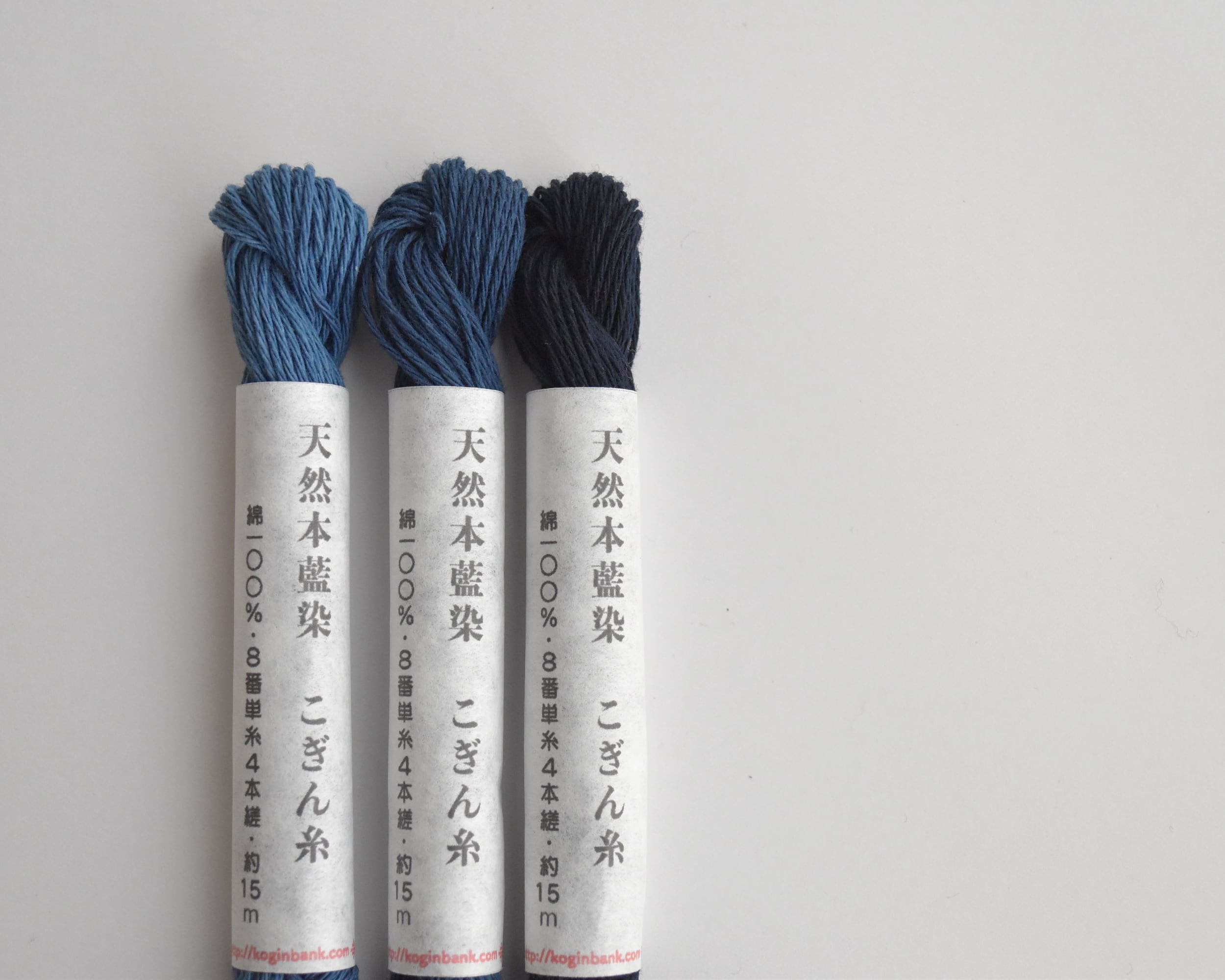 時間をじっくりかけ、本格的な天然発酵の本藍染めのこぎん糸です。