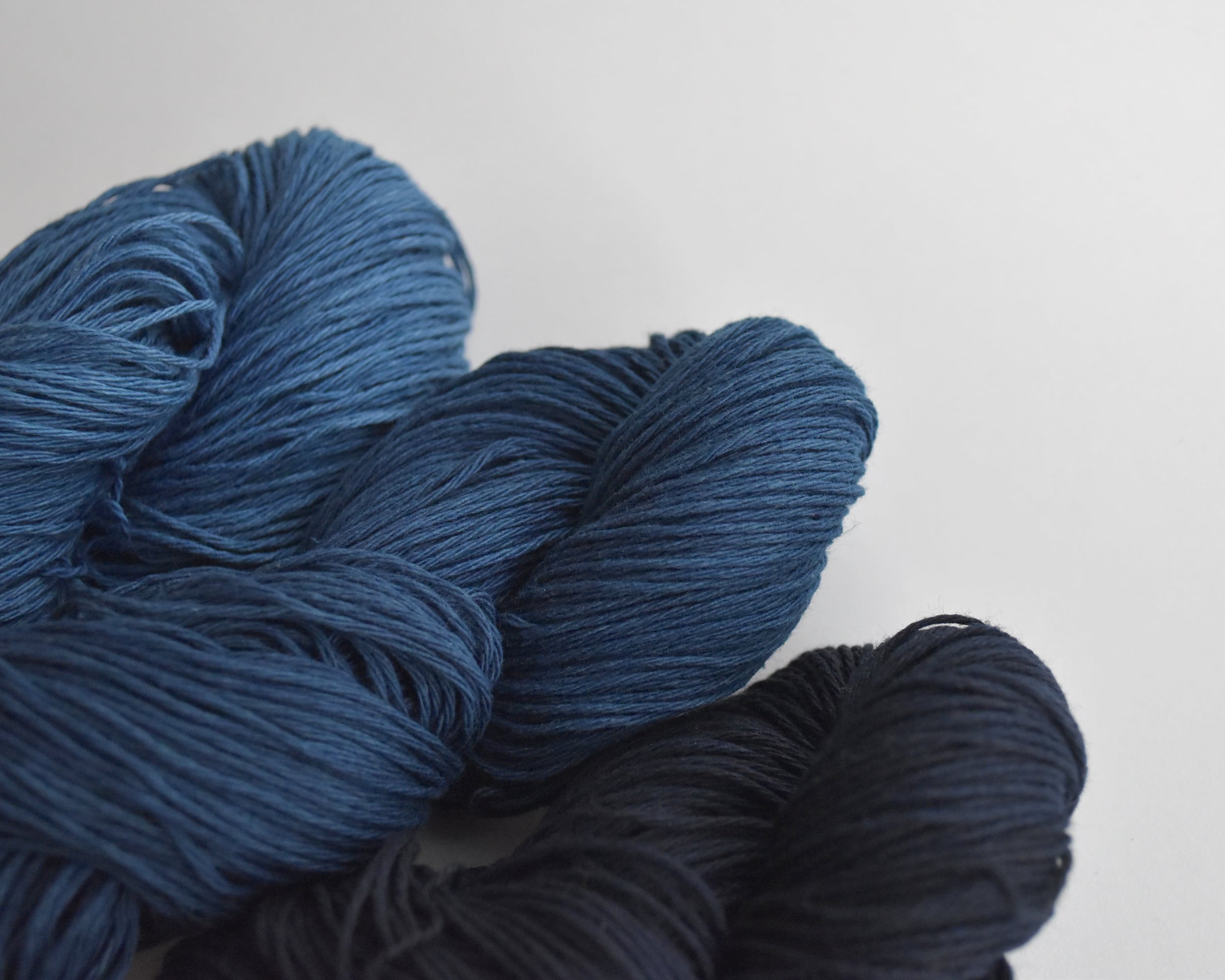 時間をじっくりかけ、本格的な天然発酵の本藍染めのこぎん糸です。